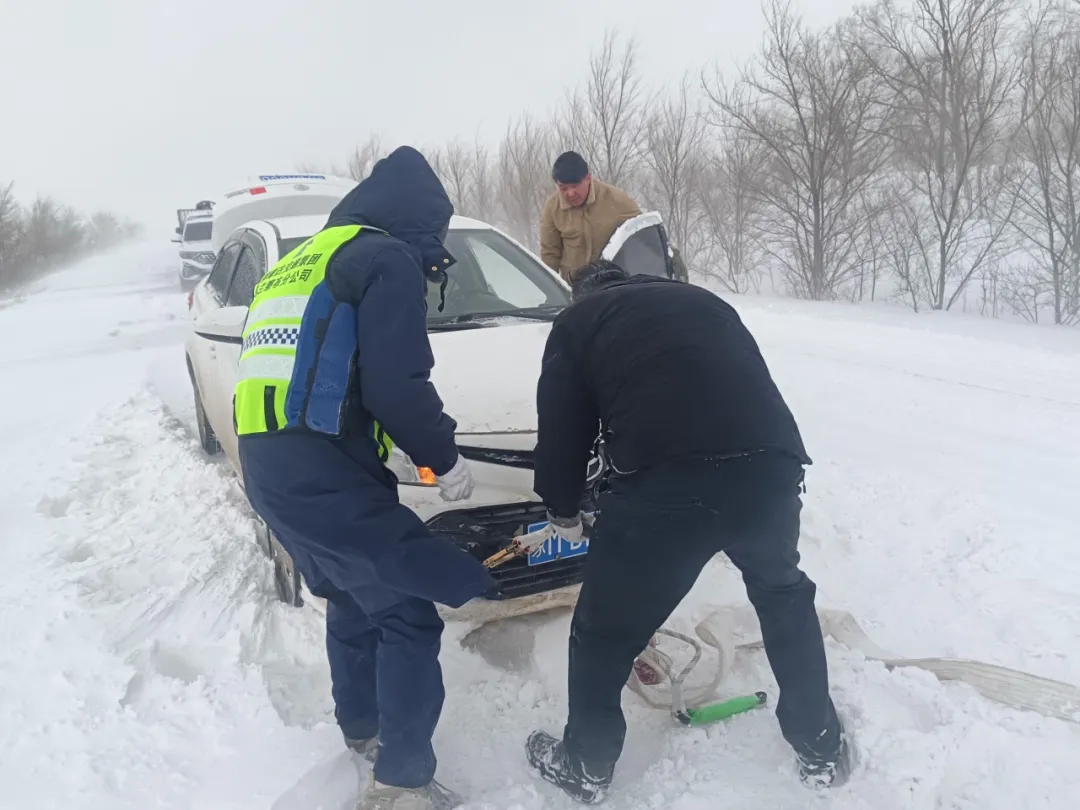 4月12日下午,化德北收費(fèi)所工作人員在護(hù)送司機(jī)去往縣城后,在返程途中發(fā)現(xiàn)有多名司機(jī)被困。大雪紛飛,車(chē)輛被困在積雪中無(wú)法動(dòng)彈,司機(jī)們?cè)诤L(fēng)中瑟瑟發(fā)抖,情況十分危急。見(jiàn)此情景,化德北收費(fèi)所工作人員毫不猶豫展開(kāi)救援。他們迅速拿出配備的除雪工具,一鏟一鏟清除車(chē)輪下的積雪,用牽引繩把被困車(chē)輛一點(diǎn)點(diǎn)從雪堆中拉出。同時(shí),耐心指導(dǎo)司機(jī)們?nèi)绾卧谘┑刂姓_駕駛,幫助他們擺脫困境。