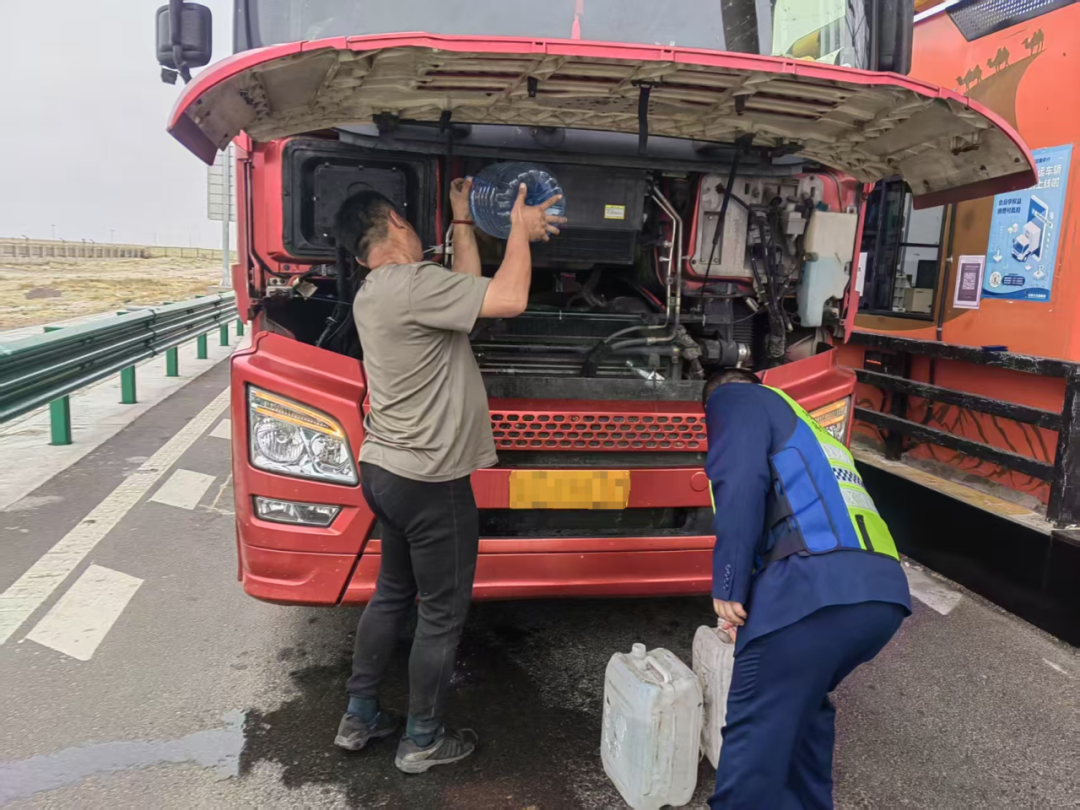 收費員立即啟動應(yīng)急預案,一方面引導故障車輛轉(zhuǎn)移至安全區(qū)域,避免造成車道擁堵;另一方面迅速調(diào)配所內(nèi)儲備清水,分裝至水桶、熱水瓶等容器,多次往返為車輛補水。經(jīng)過緊急處理,貨車發(fā)動機溫度逐步恢復正常,并成功重新啟動。司機連聲道謝:“跑長途最怕車壞在路上,多虧你們幫忙!”