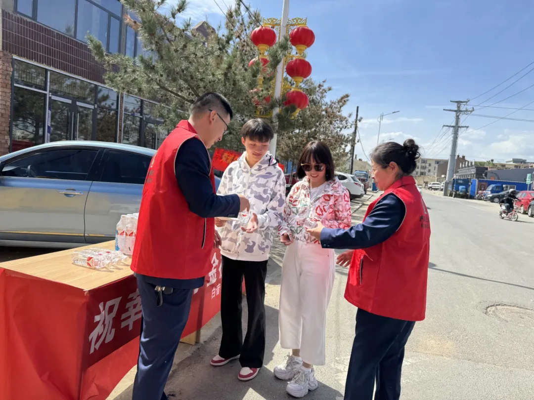 白音察干南收費(fèi)所志愿者們?cè)诓煊液笃斓诙袑W(xué)考點(diǎn)開展愛心助考志愿服務(wù)活動(dòng)。清晨,他們?cè)缭鐏?lái)到考點(diǎn)外設(shè)立“愛心助考服務(wù)站”,擺放礦泉水、紙巾、防暑藥品、文具等物資,為考生和家長(zhǎng)免費(fèi)提供。在炎炎烈日下,志愿者們熱情服務(wù),緩解他們的緊張情緒。