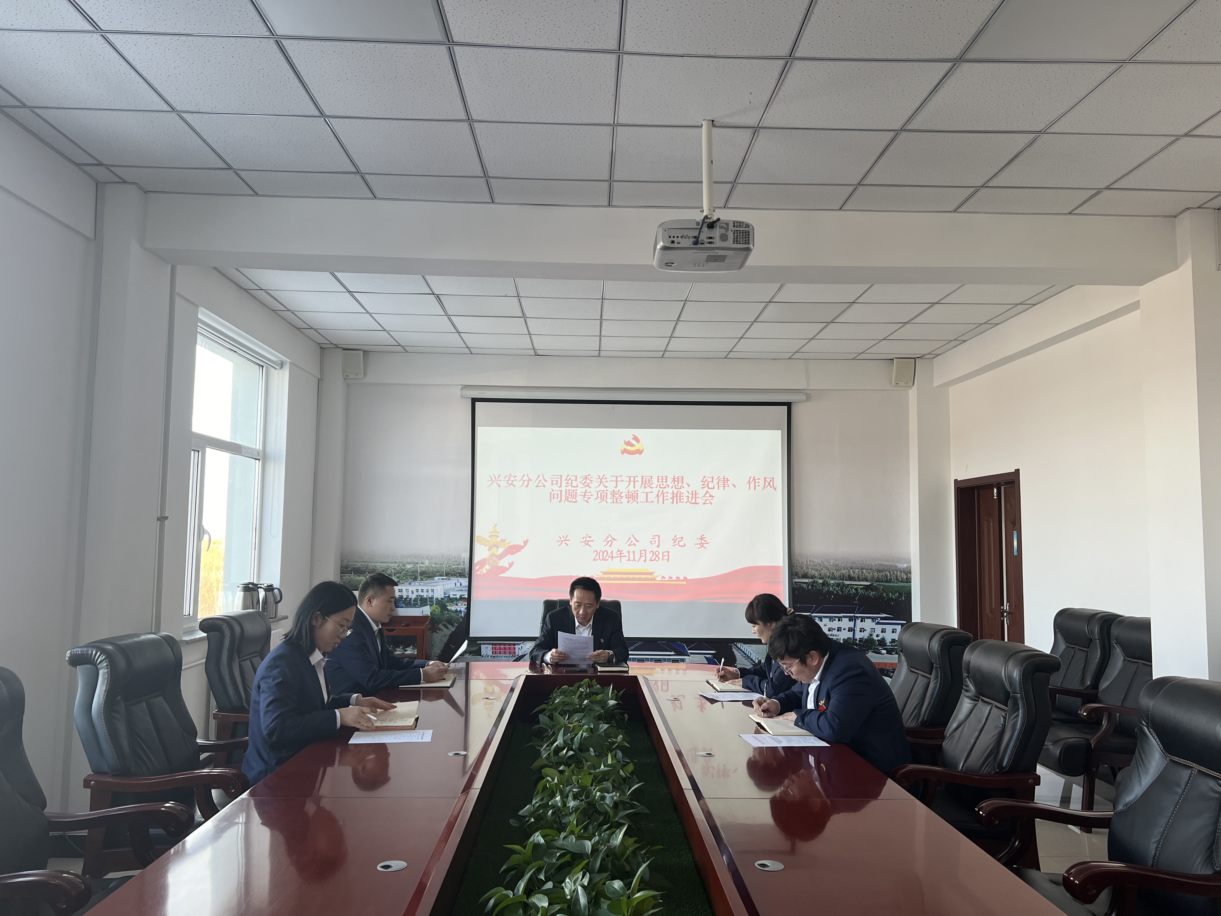 為深入學(xué)習(xí)貫徹習(xí)近平總書記關(guān)于黨的建設(shè)的重要思想,根據(jù)集團(tuán)紀(jì)委關(guān)于開展思想、紀(jì)律、作風(fēng)問題專項(xiàng)整頓工作的通知和分公司黨委實(shí)施方案要求,興安分公司紀(jì)委于11月28日召開關(guān)于開展思想、紀(jì)律、作風(fēng)問題專項(xiàng)整頓工作推進(jìn)會(huì),興安分公司黨委委員、紀(jì)委書記周穎杰主持召開會(huì)議并作具體安排部署。