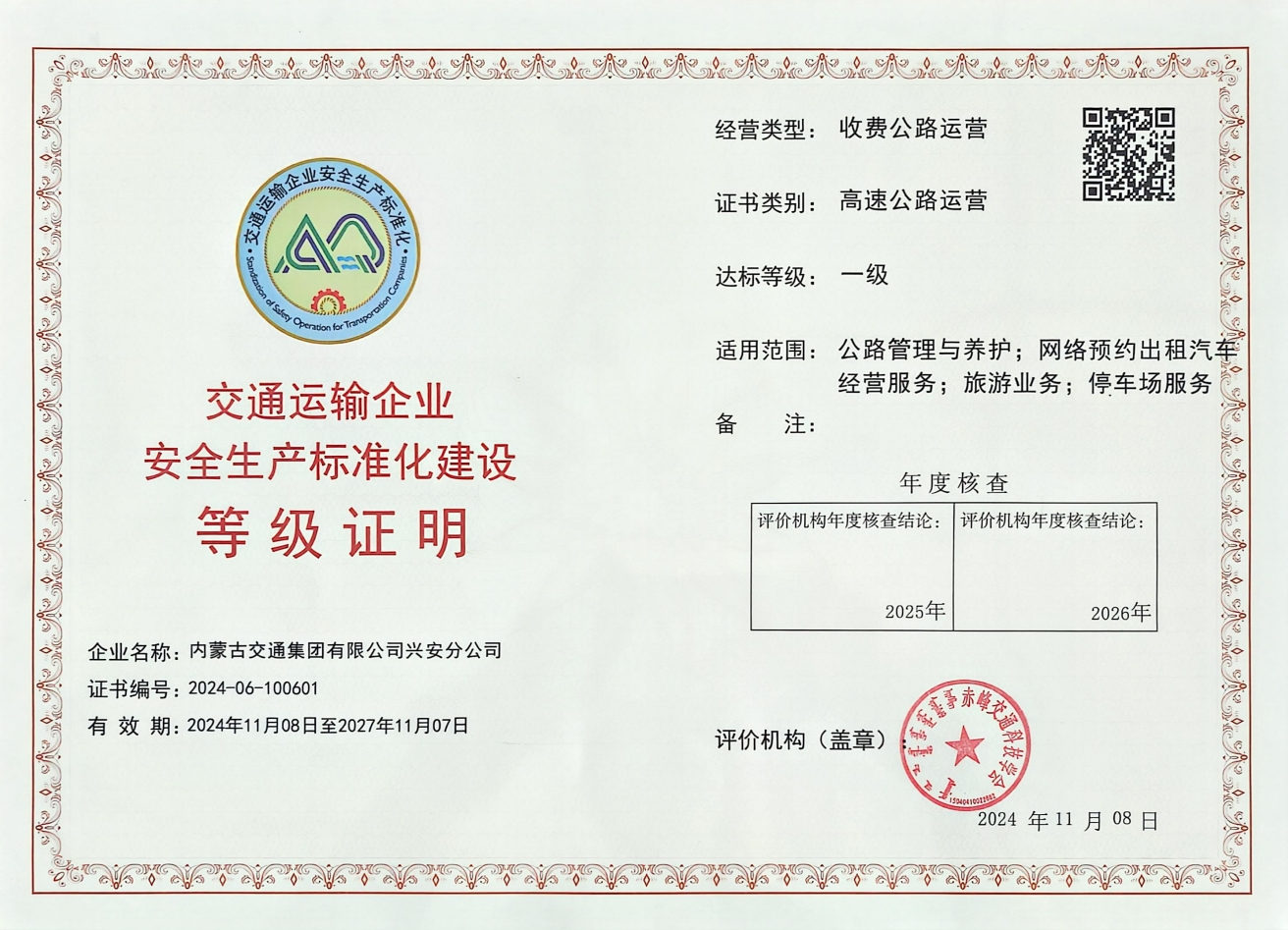 近日,興安分公司通過交通運輸企業(yè)安全生產(chǎn)標準化一級企業(yè)評審,取得了交通運輸企業(yè)安全生產(chǎn)標準化建設(shè)“一級”等級證書,標志著分公司在安全生產(chǎn)建設(shè)上實現(xiàn)了提質(zhì)升級。