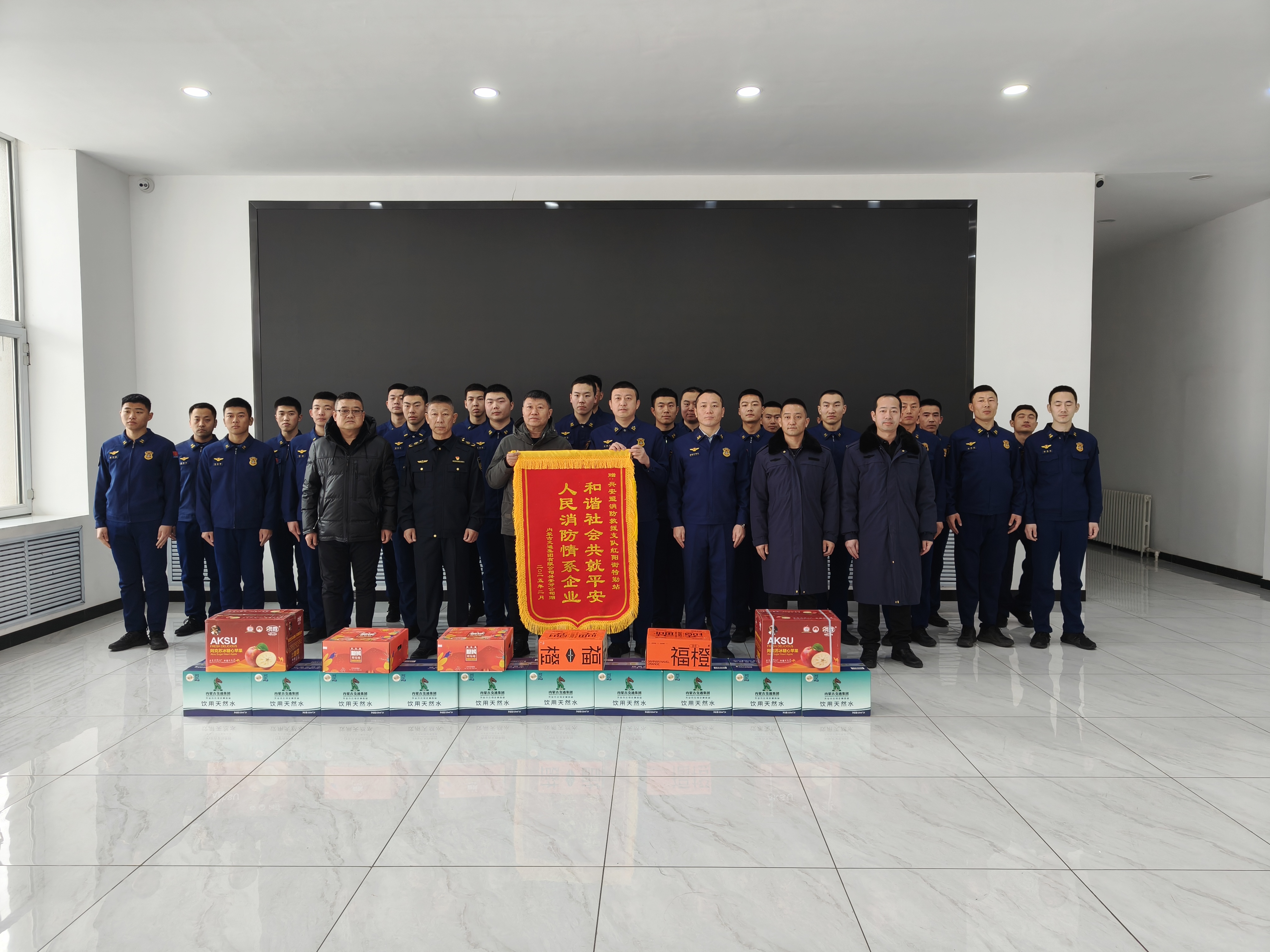 2月11日上午,興安分公司黨委委員、副經(jīng)理趙恒勇一行將一面印有“和諧社會共就平安 人民消防情系企業(yè)”的錦旗送到了興安盟消防救援支隊紅陽街特勤站,以此表達對該站全體消防救援人員誠摯的敬意和衷心的感謝。