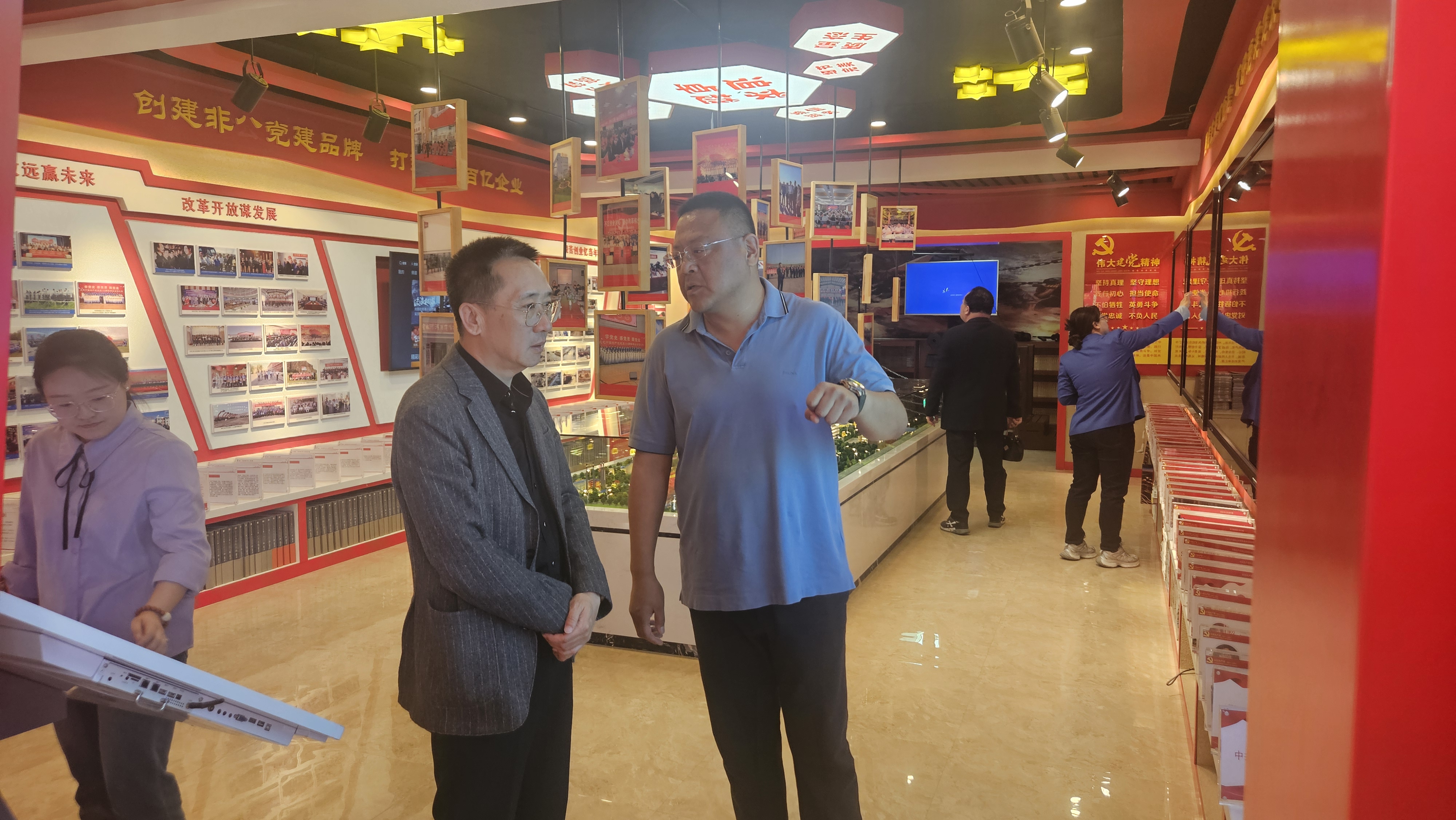 期間,周穎杰一行在喬麗博帶領(lǐng)下參觀了源源集團(tuán)黨群服務(wù)中心,深入了解其“五融合五引領(lǐng)”源源黨建品牌。