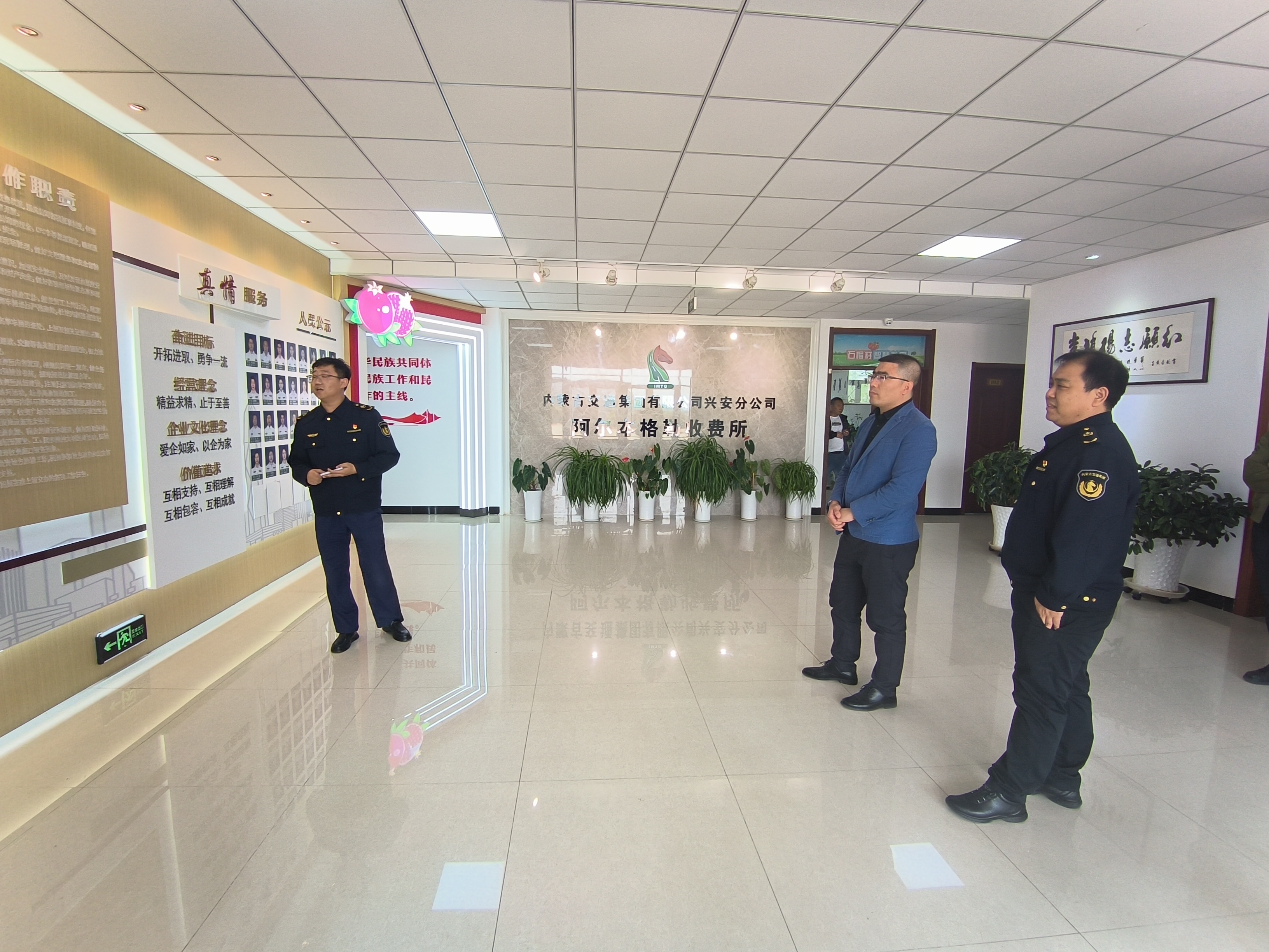 期間,督導(dǎo)組在所站講解員的帶領(lǐng)下,依次參觀了收費(fèi)所文化陣地、民族團(tuán)結(jié)長廊、黨建長廊、黨員活動(dòng)室、安全生產(chǎn)陣地等,并對(duì)各項(xiàng)工作進(jìn)行指導(dǎo),進(jìn)一步促進(jìn)了收費(fèi)所各項(xiàng)工作再上新臺(tái)階。