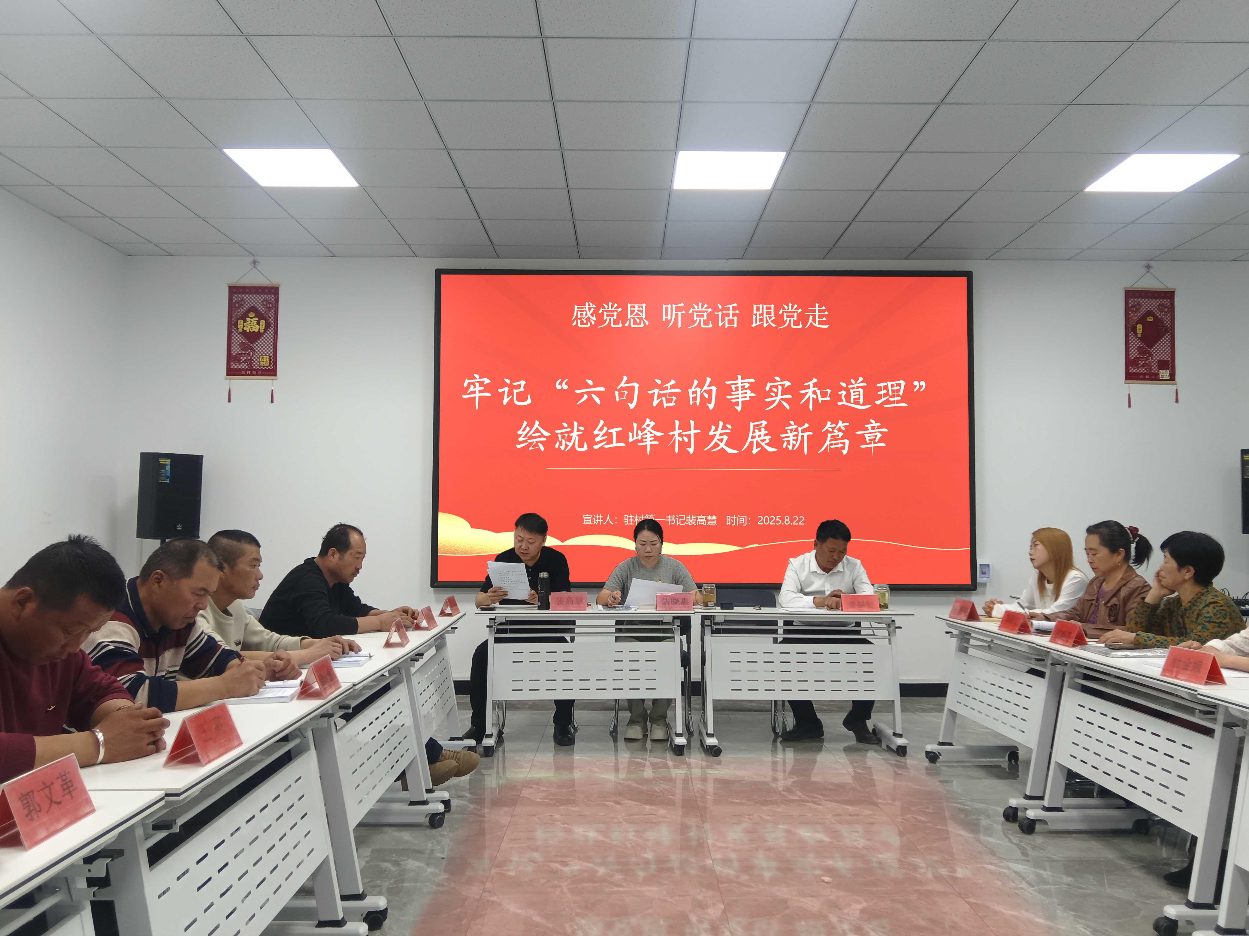 為常態(tài)化開展好“感黨恩、聽黨話、跟黨走”群眾教育實踐活動,8月22日下午,集團駐紅峰村第一書記裴高慧面向村黨員和村民代表講授專題黨課,以生動講述凝聚鄉(xiāng)村振興發(fā)展共識,推動教育實踐活動走深走實。