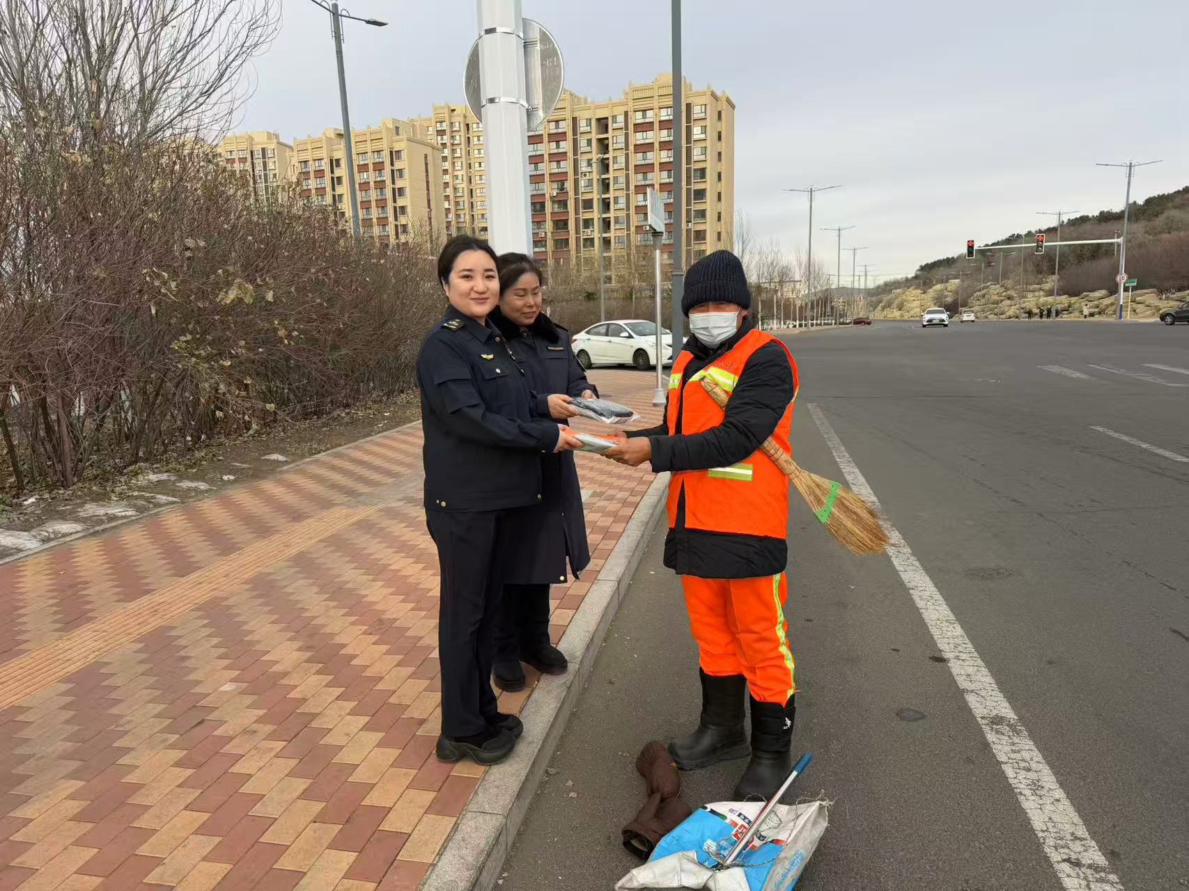 環(huán)衛(wèi)工人是城市美好環(huán)境的創(chuàng)造者和守護(hù)者,是推進(jìn)環(huán)衛(wèi)工作發(fā)展不可或缺的力量。12月15日,興隆收費(fèi)所組織開(kāi)展了“寒冬送溫暖”慰問(wèn)活動(dòng),為堅(jiān)守在一線的環(huán)衛(wèi)工人送去了御寒棉手套和發(fā)熱鞋墊,用實(shí)際行動(dòng)為寒冬里堅(jiān)守崗位的勞動(dòng)者送上關(guān)懷與敬意。(陳含)