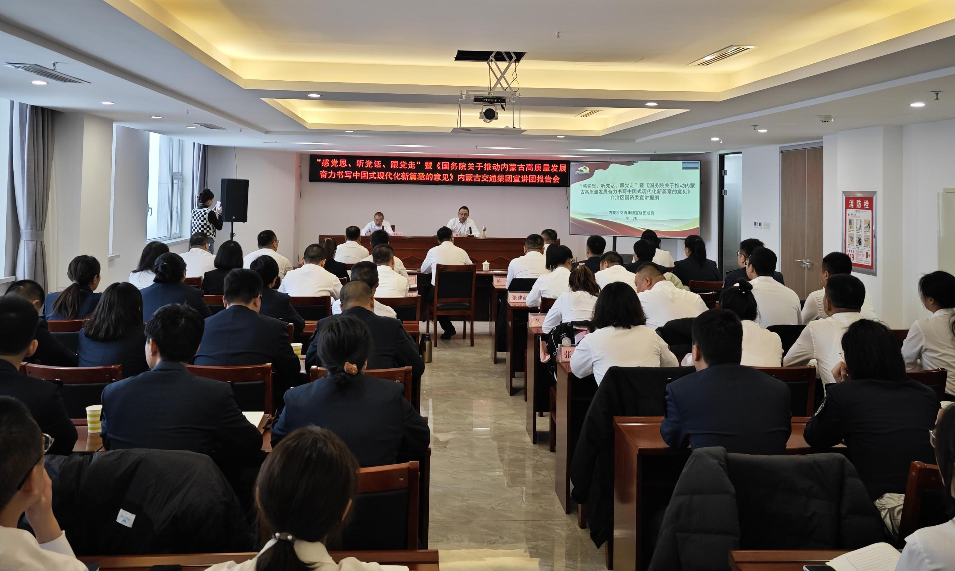 12月14日,內蒙古交通集團有限公司黨委“感黨恩、聽黨話、跟黨走”暨《國務院關于推動內蒙古高質量發(fā)展奮力書寫中國式現(xiàn)代化新篇章的意見》宣講團成員辛煒在錫林浩特為錫林郭勒、蒙通養(yǎng)護分公司進行主題宣講。宣講報告會采取線下和線上相結合的方式開展,兩個分公司領導班子成員,各部室、各基層單位副主管及以上干部70余人參加。