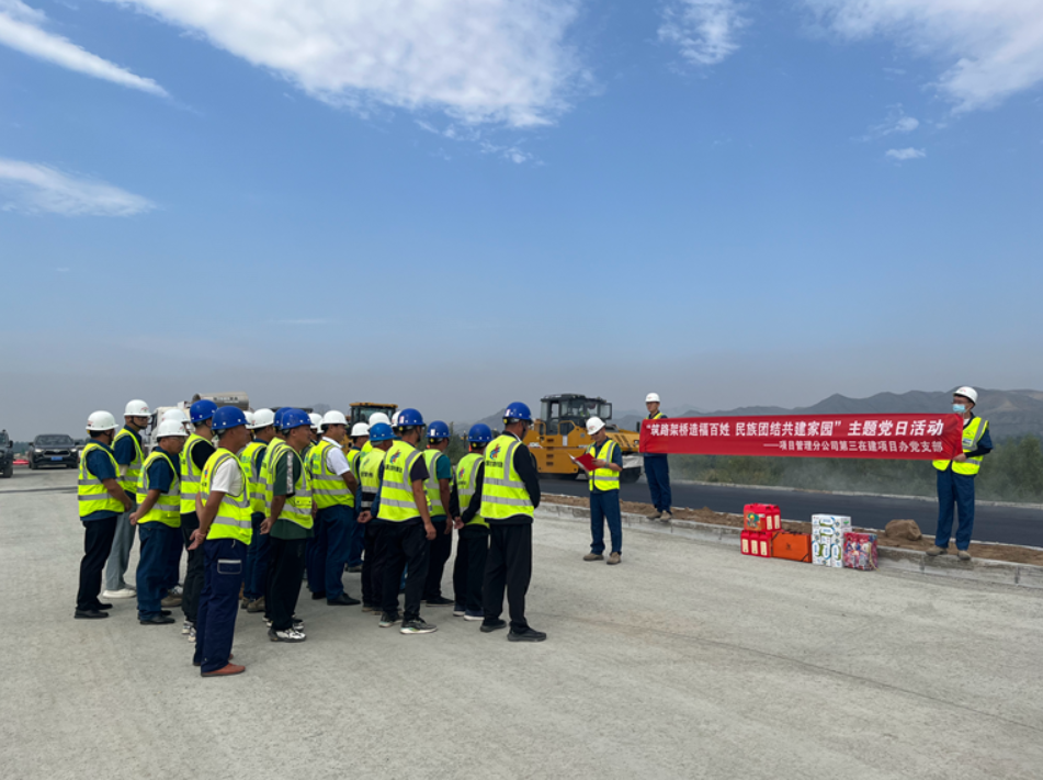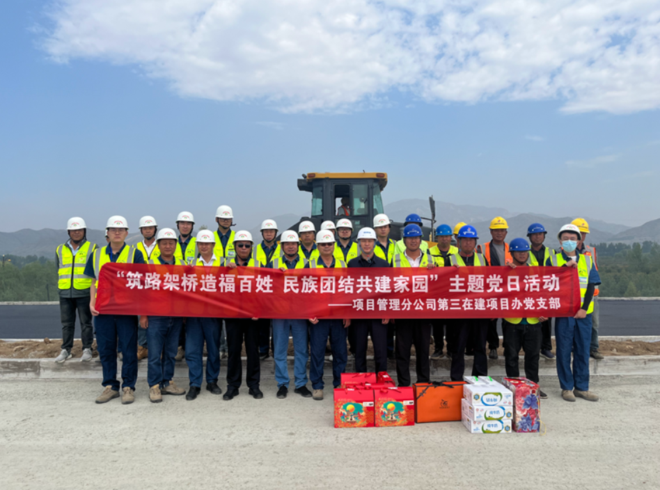 為大力營(yíng)造全區(qū)民族團(tuán)結(jié)進(jìn)步活動(dòng)月濃厚氛圍,同時(shí)響應(yīng)分公司“攻堅(jiān) 60 天,確保完成年度目標(biāo)任務(wù)”的號(hào)召,又值“中秋、國(guó)慶”雙節(jié)來(lái)臨之際,9月15日,第三在建項(xiàng)目辦黨支部來(lái)到畢協(xié)項(xiàng)目一期工程下面層攤鋪現(xiàn)場(chǎng),開(kāi)展“筑路架橋造福百姓、民族團(tuán)結(jié)共建家園”主題黨日活動(dòng),慰問(wèn)項(xiàng)目施工一線的參建工人。