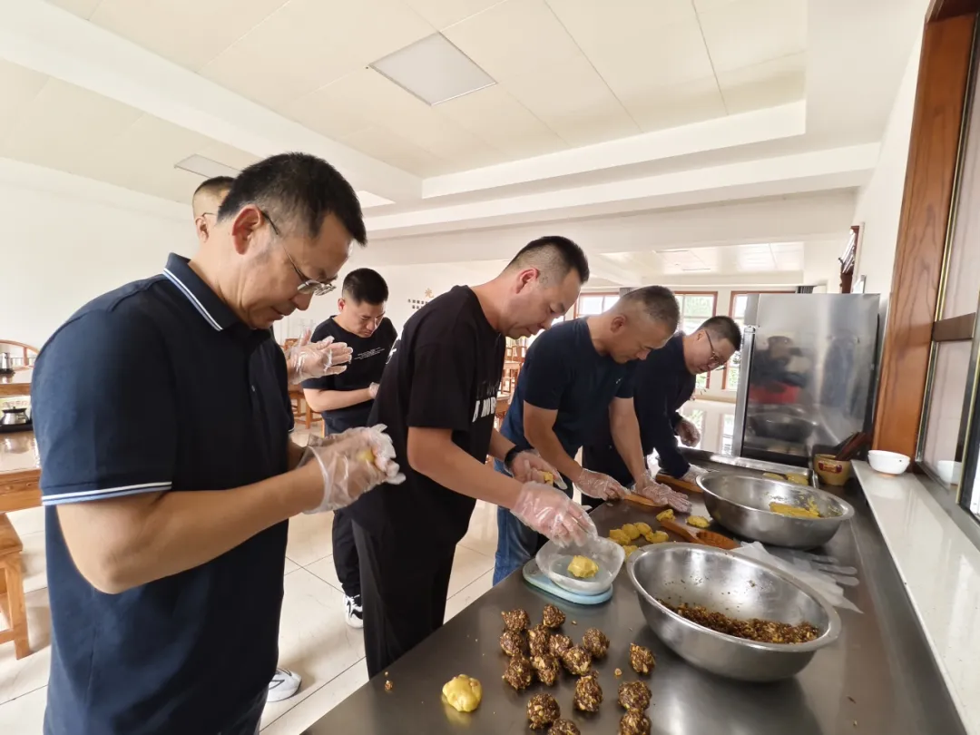 活動中,包茂建管辦的領(lǐng)導(dǎo)干部與在崗職工一起認真學(xué)習制作月餅的步驟,并進行明確分工。從精心拌餡料、和餅皮,到細致地搟餅皮、包餡料,再到扣模脫模以及煎烤等環(huán)節(jié),每一個步驟都飽含著全體職工的心血與努力。盡管大家的額頭上滲出了汗水,但臉上始終洋溢著幸福的笑容。