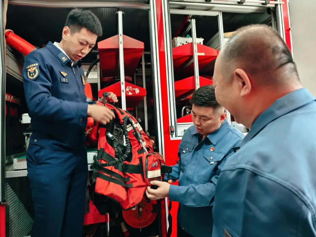 活動伊始,在消防員的引導(dǎo)下,全體人員首先參觀了消防救援車輛和各類專業(yè)器材裝備庫。一輛輛紅色戰(zhàn)車、一件件精良裝備,令在場人員肅然起敬。消防員詳細(xì)講解了登高平臺車、泡沫水罐消防車、搶險(xiǎn)救援車等不同車輛的功能,以及液壓破拆工具組、消防防護(hù)服等器材的用途與使用方法。大家認(rèn)真聆聽,積極提問,并親手觸摸和體驗(yàn)了部分器材,對消防工作的專業(yè)性與危險(xiǎn)性有了更為直觀和深刻的認(rèn)識。