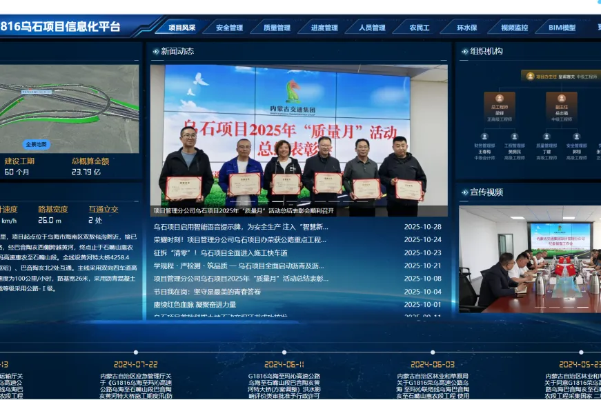 新科項(xiàng)目、查草項(xiàng)目通過(guò)交工驗(yàn)收;二賽、白安、安公、烏銀等項(xiàng)目完成全部收尾工程;G1816烏石項(xiàng)目打造自治區(qū)“智慧梁場(chǎng)”與鋼結(jié)構(gòu)橋梁建設(shè)新標(biāo)桿;G1015新科項(xiàng)目以“魯班獎(jiǎng)”工程工藝標(biāo)準(zhǔn)打造房建精品工程;多個(gè)項(xiàng)目在施工中打造智慧梁場(chǎng)、數(shù)字化拌合站、路面3D攤鋪、無(wú)人機(jī)巡檢等智慧工地場(chǎng)景,積極推廣鋼渣、粉煤灰等工業(yè)固廢利用技術(shù);簽約安全管理、質(zhì)量檢測(cè)等專業(yè)團(tuán)隊(duì)強(qiáng)化施工過(guò)程管控;以“草原杯”“李春獎(jiǎng)”“魯班獎(jiǎng)”為建設(shè)目標(biāo),打造內(nèi)蒙古自治區(qū)公路建設(shè)品質(zhì)工程、精品工程、樣板工程、廉潔工程,接下來(lái)讓我們跟隨小編看看項(xiàng)目管理分公司各項(xiàng)目在2025年這一年的建設(shè)成果。