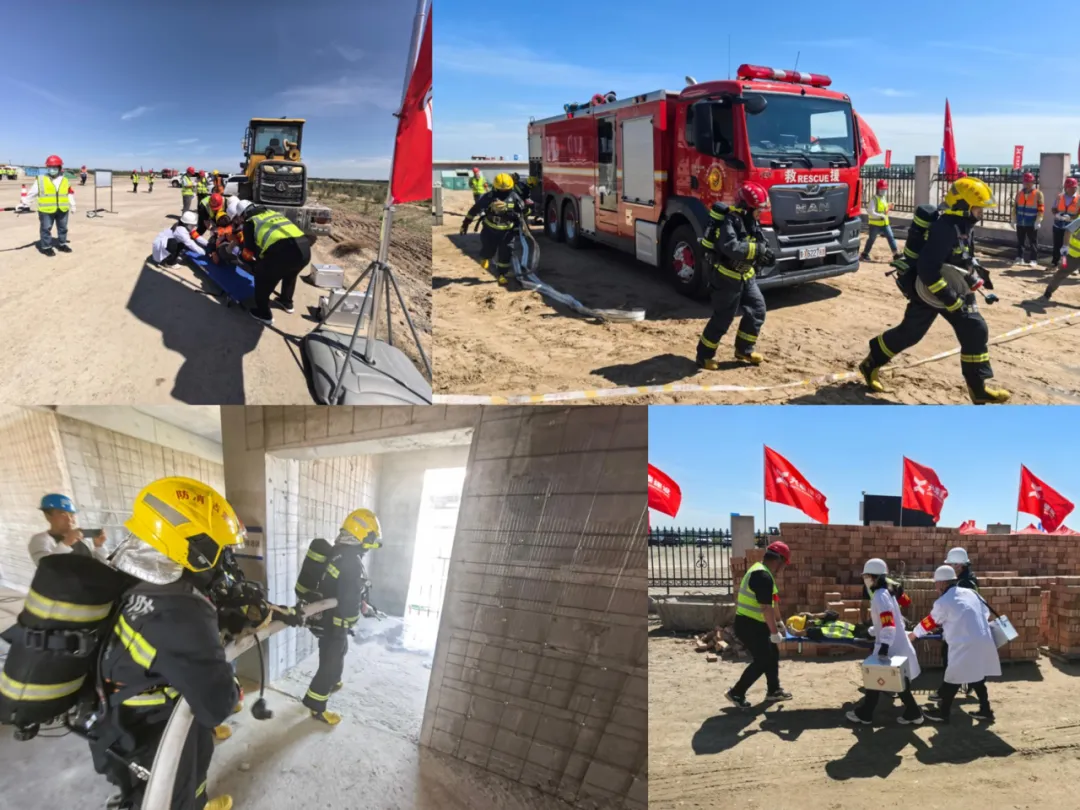 演練在新科項目辦主任馮彬的動員講話中拉開帷幕,隨著科右中旗人民政府副旗長李景光的一聲令下,演練正式開始。整個演練過程緊張有序,各個小組迅速響應(yīng),緊密配合,展示了高效的應(yīng)急響應(yīng)機制。演練內(nèi)容涵蓋了消防安全、高處墜落、機械傷害等多個方面,模擬了真實的事故場景,讓參演人員身臨其境地感受到了應(yīng)急工作的緊迫性和重要性。