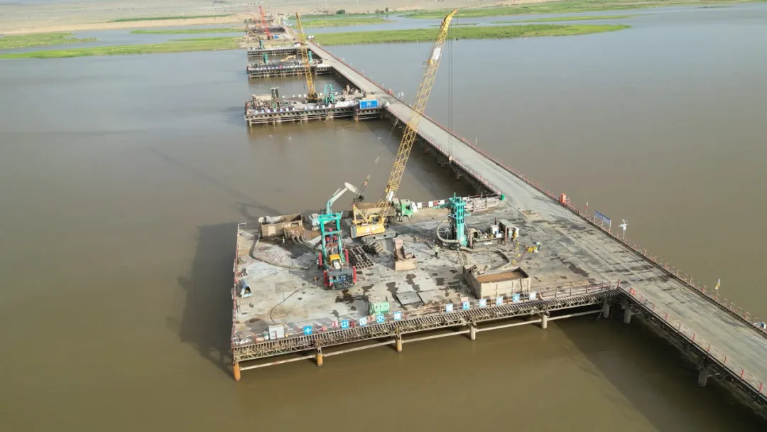 國(guó)道110線磴口黃河大橋,計(jì)劃6月底完成全部主橋樁基,目前共完成主橋樁基227根,完成85%、承臺(tái)鋼板樁圍堰5個(gè)、承臺(tái)封底1個(gè)、跨堤橋承臺(tái)5個(gè)、灘橋墩柱8根、路基土方26萬(wàn)方。6月15日完成首件40米預(yù)制 T梁澆筑。參建單位中交二局及內(nèi)蒙古路橋集團(tuán)在不斷加大投入精心組織,全力以赴推進(jìn)項(xiàng)目建設(shè)。