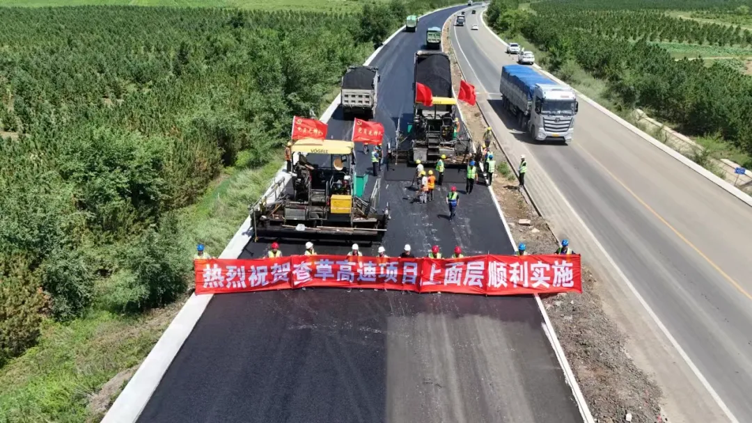 近日,查草高速中交四航局標段瀝青路面上面層試驗段攤鋪順利完成。