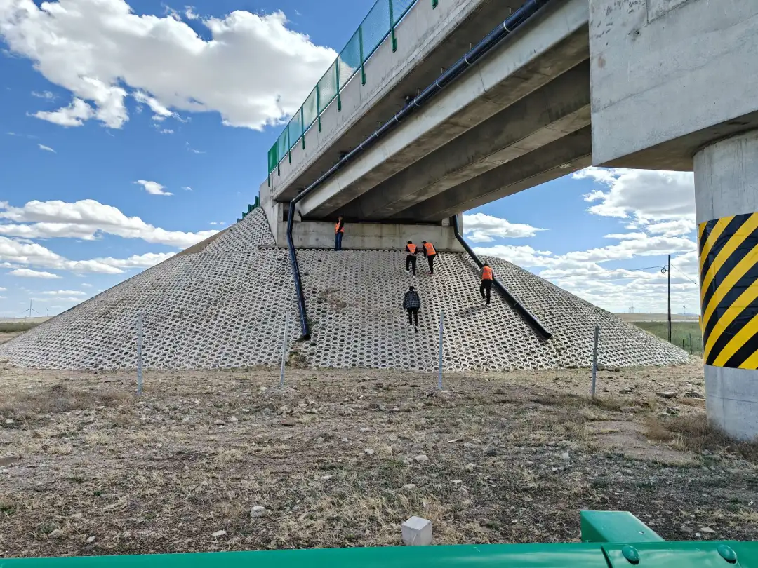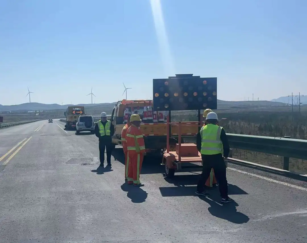 與此同時(shí),蒙通養(yǎng)護(hù)公司相關(guān)分公司派出養(yǎng)護(hù)保障車全程跟隨警示,通過持續(xù)的安全警示和交通疏導(dǎo),有效防范道路安全風(fēng)險(xiǎn),為檢測工作營造安全穩(wěn)定的作業(yè)環(huán)境。