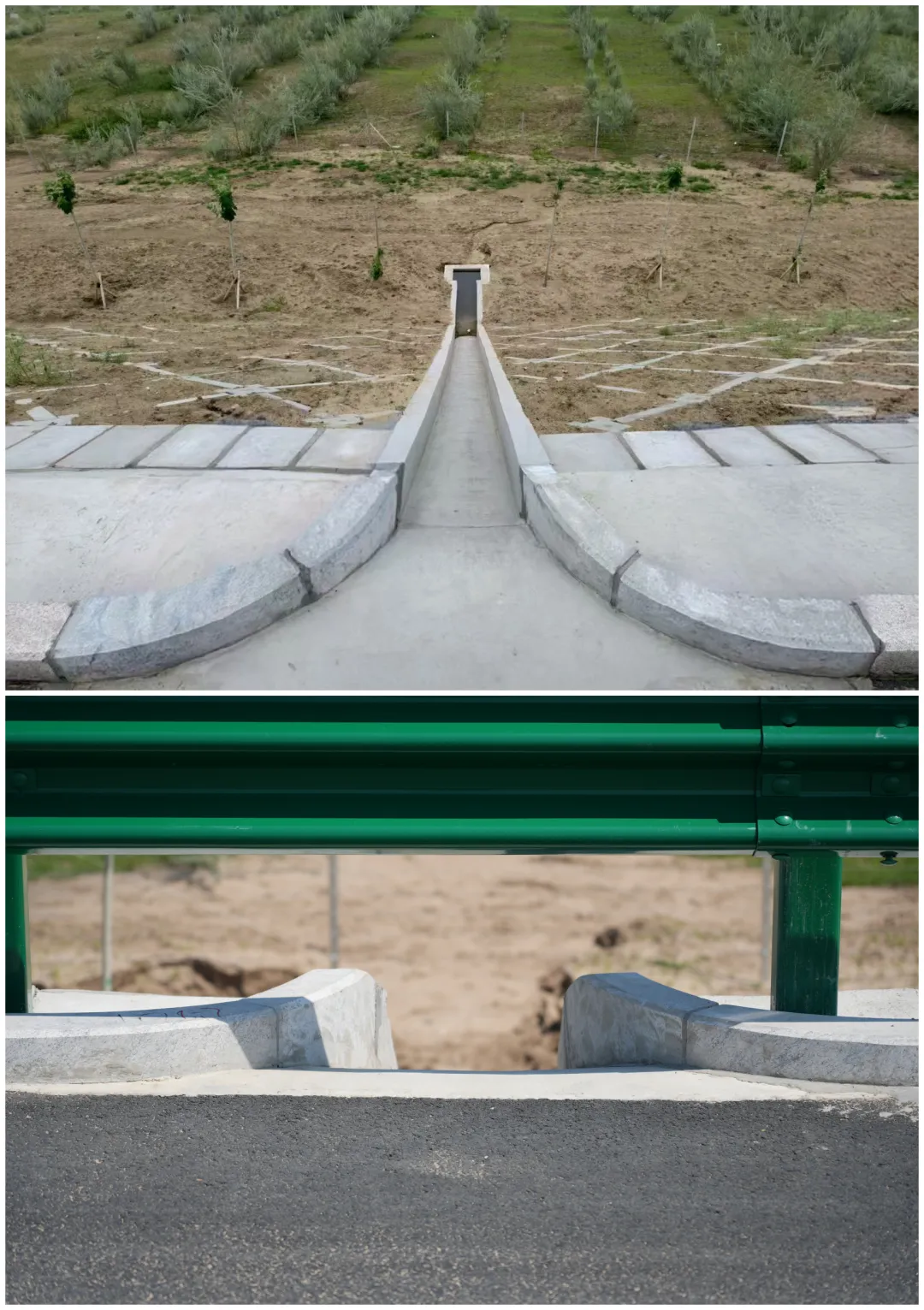 在材料創(chuàng)新方面,項目率先應用UHPC(超高性能混凝土)于橋梁伸縮縫,其卓越的強度顯著提升了抗破壞能力與結構耐久性,有效延長了使用壽命。自研定制橡膠條處理涵洞沉降縫和結構膠處理板縫的新施工工藝,有效解決涵洞密封效果不佳導致漏水、處理效果欠佳影響美觀、耐久性差需頻繁維修等問題。針對傳統(tǒng)急流槽收水口的痛點,項目創(chuàng)新性通過工廠化精密定制花崗巖與BIM模型的協(xié)同設計,實現(xiàn)了急流槽的精準定位安裝,確保路緣石與收水口的無縫銜接,成功破解了護欄立柱打入槽體的難題,從源頭上降低了后期維護成本。