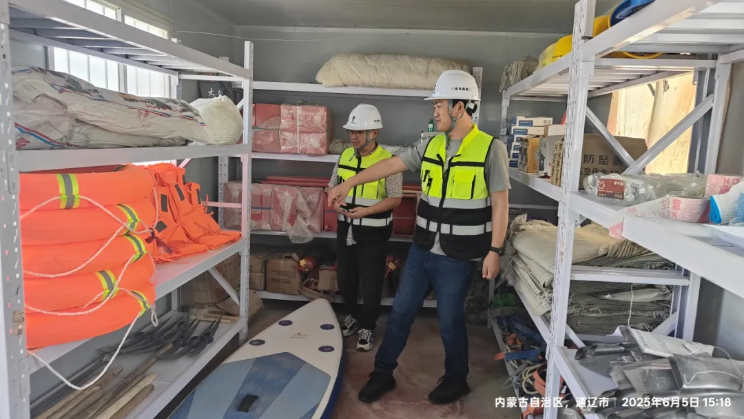項目辦對各施工單位汛期應急物資開展排查,以“賬物相符、性能達標、調(diào)運順暢”為核心標準,全面檢驗物資儲備點的防洪防汛物資、設備,為汛期應急處置夯實物資基礎。