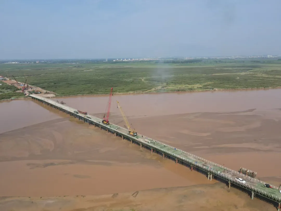 2025年8月3日上午10時(shí),G1816烏石高速公路K16+512巴音陶亥黃河特大橋水上施工鋼棧橋順利合龍貫通。隨著最后一塊組合橋面板鋪設(shè)完成,標(biāo)志著該特大橋施工通道全面打通,為主橋施工創(chuàng)造關(guān)鍵條件。