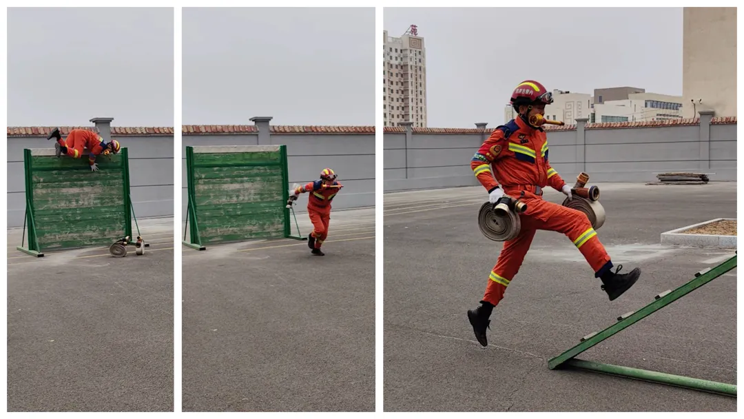 “預(yù)備—開始!” 隨著指令落下,一道橙色身影瞬間從樓外徒手抓繩只用30秒的時間,就爬升到了4層樓的高度,如果說爬樓是耐力考驗,障礙訓(xùn)練場則是力量與技巧的競技場。在消防救援大隊訓(xùn)練區(qū),賽道上的重重關(guān)卡讓人眼花繚亂,消防隊員以飛快的速度翻越2米高的障礙墻,翻越時雙手撐躍的爆發(fā)力,讓圍觀人群忍不住喝彩;獨木跨橋上腳步穩(wěn)如磐石,哪怕木板輕微晃動也絕不減速。這些從來不是表演。每一次徒手登樓,都是在模擬高層火災(zāi)中的生命沖刺;每一次翻越障礙,都是在為實戰(zhàn)中的破局蓄力。他們不是天生的英雄,只是把別人的“不可能”,練成了自己的“日?!?。看著消防隊員們互相檢查裝備、復(fù)盤動作的身影,突然讀懂了“哪有什么歲月靜好,不過有人替你負重前行”的深意。他們在繩上的每一次精準控制,過障礙時的每一次全力沖刺,都是為了在真實火情中,多搶回一秒生機。